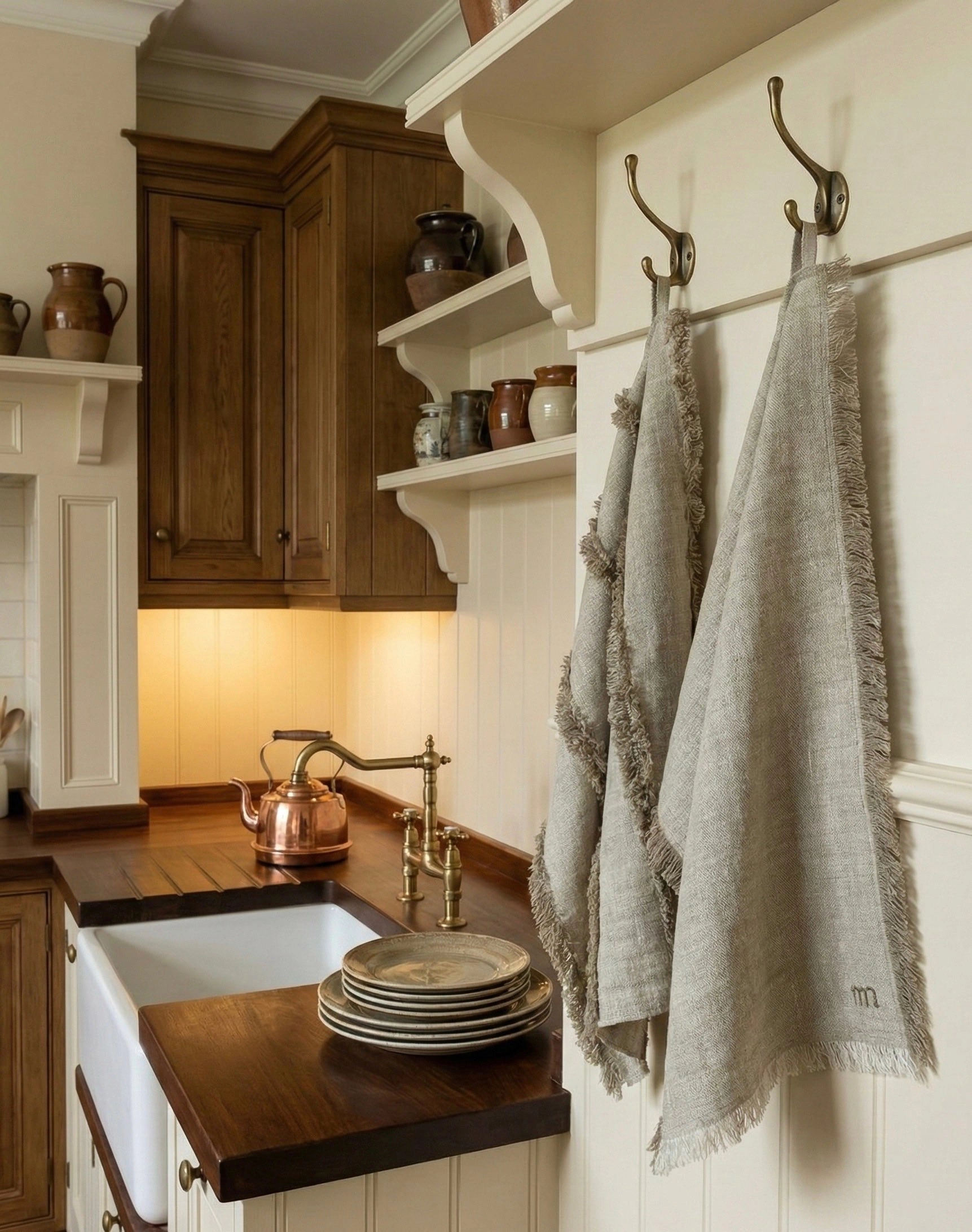 • Деталь Премиум-Класса: Каждое полотенце дополнено изящной вышивкой-монограммой, что подчеркивает ручную работу и эксклюзивность изделия.