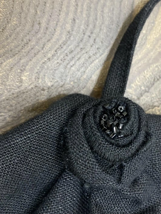 Декор: Объемная черная роза ручной работы, сердцевина которой выполнена из черного глянцевого бисера — это элегантный и сдержанный люксовый акцент.