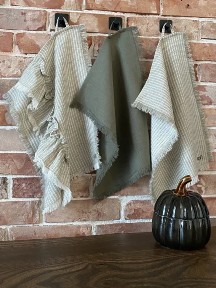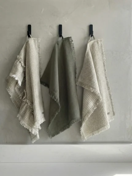 Практичность и Удобство: Оснащены удобными петлями для подвешивания, благодаря которым полотенца аккуратно висят, не соскальзывая (как на фото).