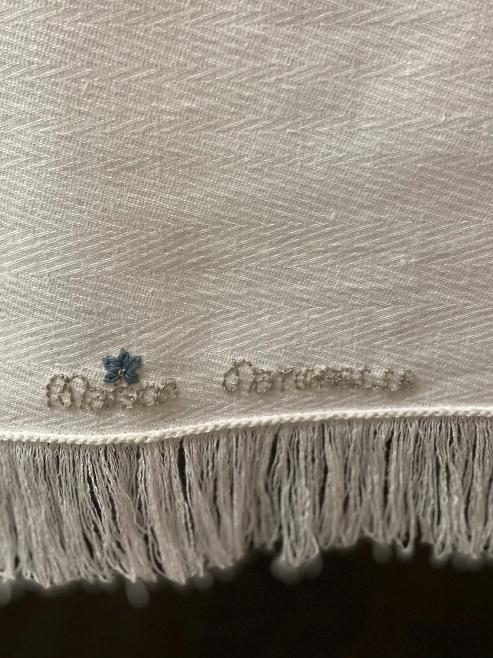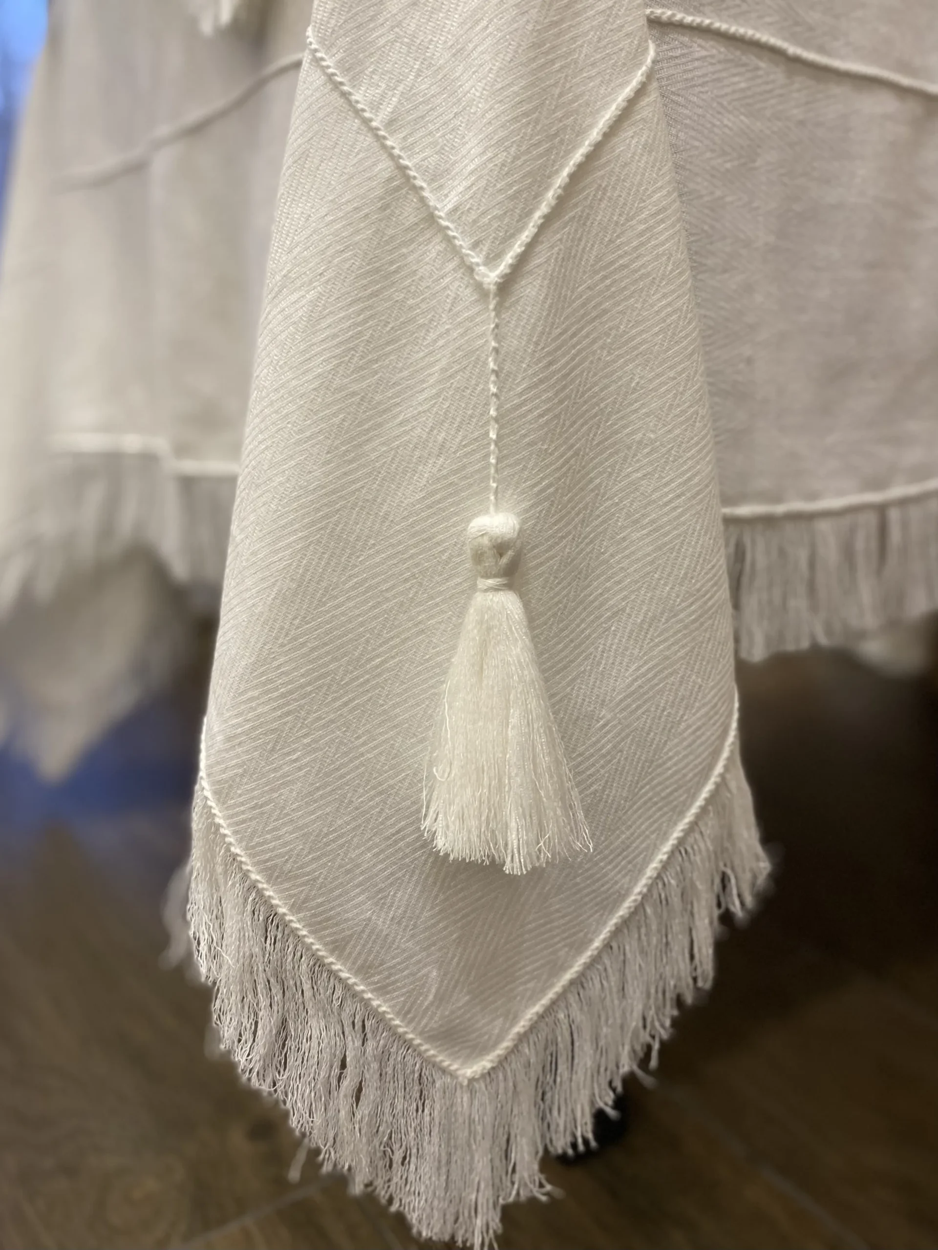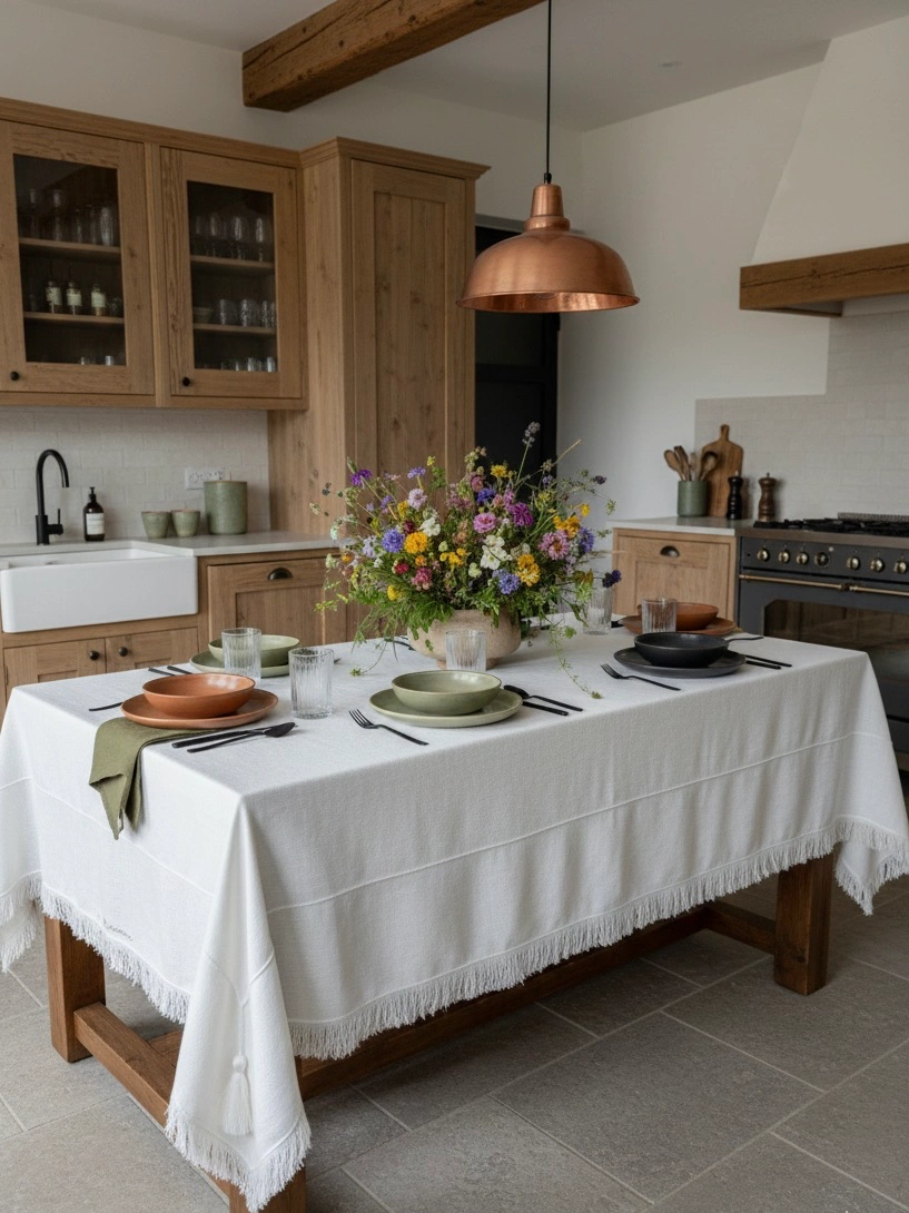 ✨ Чистая Роскошь: Скатерть Ручной Работы с Бахромой и Вышивкой