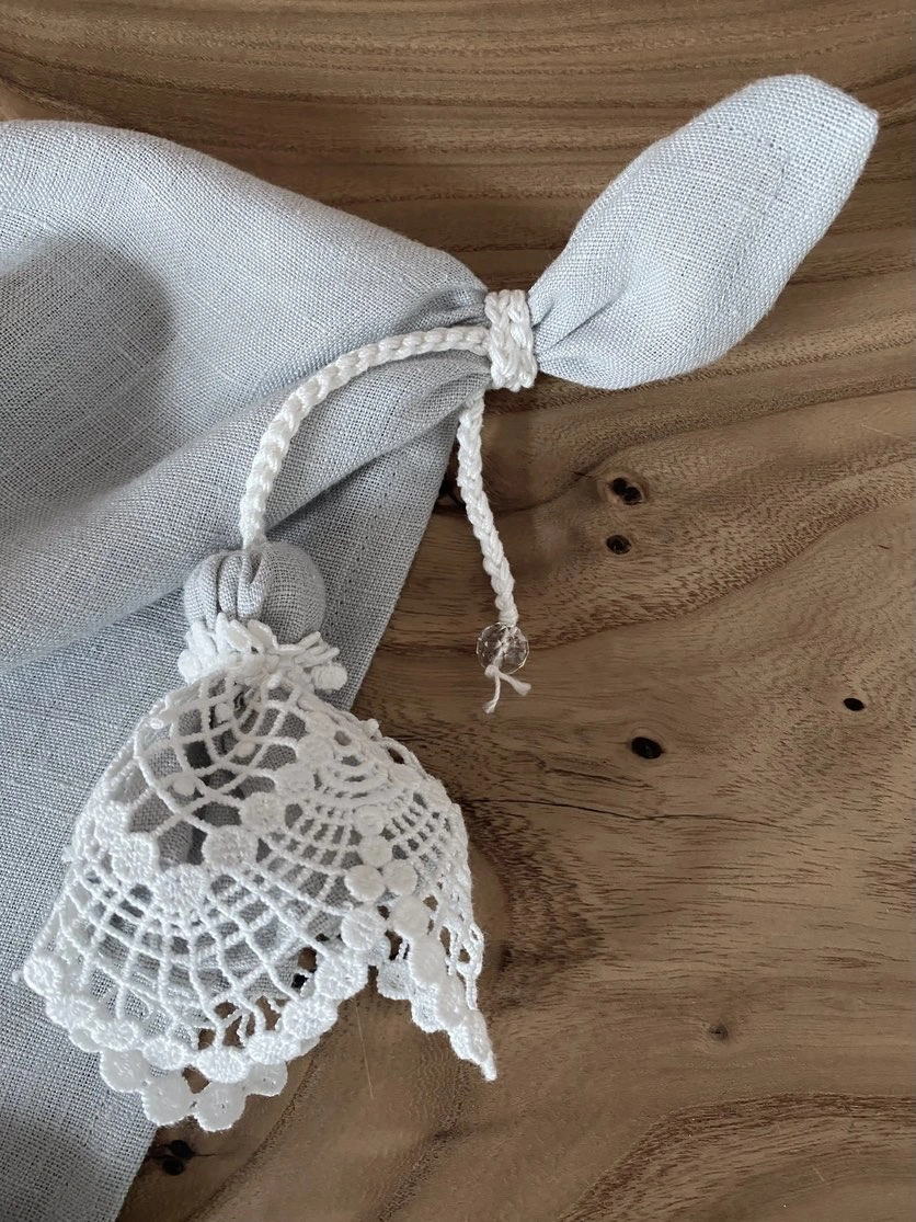 Подвесы-Аксессуары Декоративные аксессуары (подхваты) для фиксации полотенца украшены миниатюрной кисточкой из ткани и вязаной кружевной деталью.