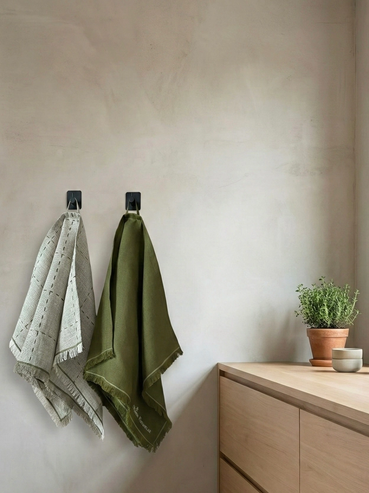 Представляем премиальный парный набор полотенец для кухни или столовой. Этот комплект — идеальное сочетание натуральных оттенков, высокого качества льна и минималистичного, но выразительного дизайна. Идеально подходит для интерьеров в стиле Эко, Рустик и Современный Минимализм.