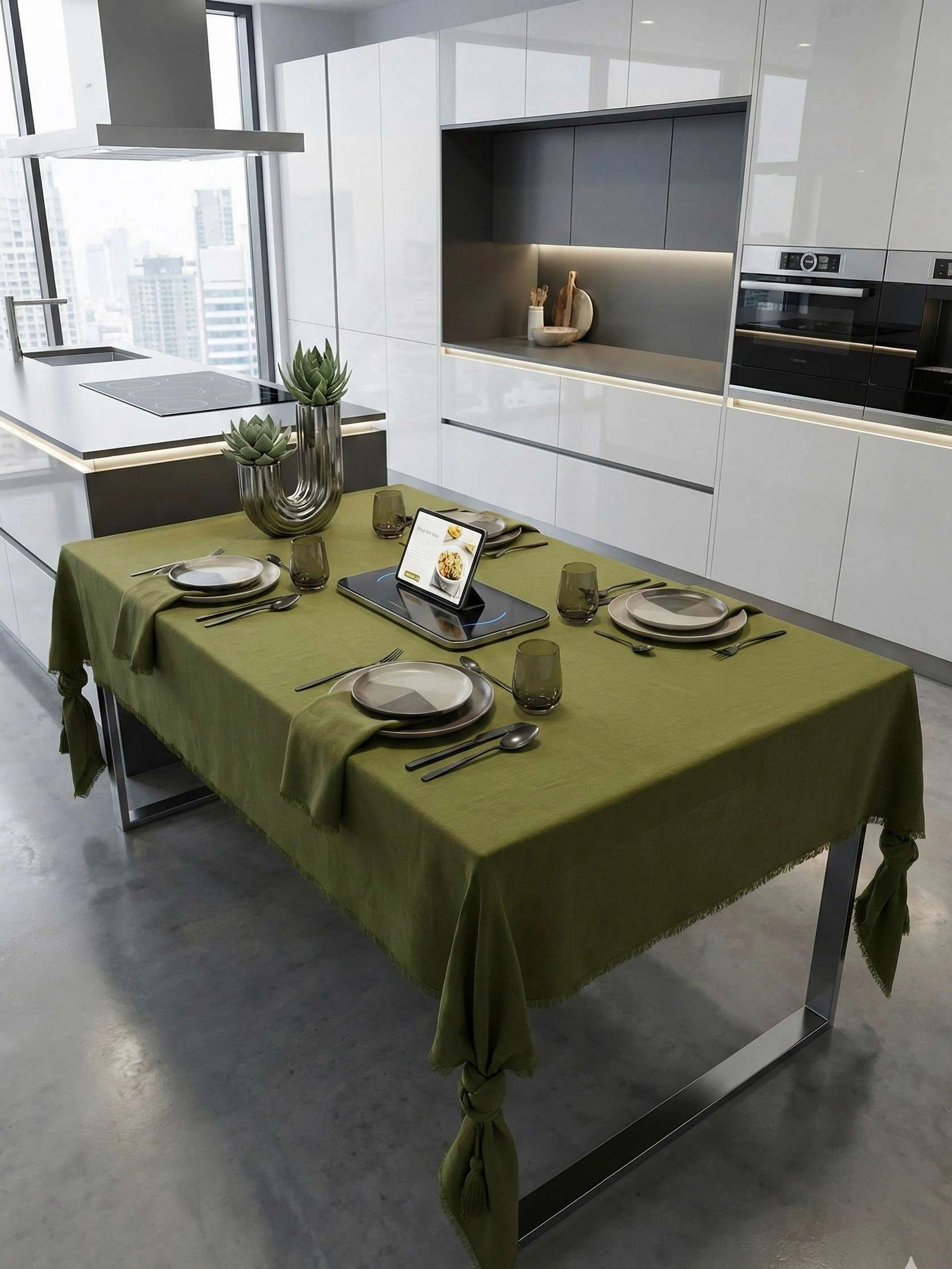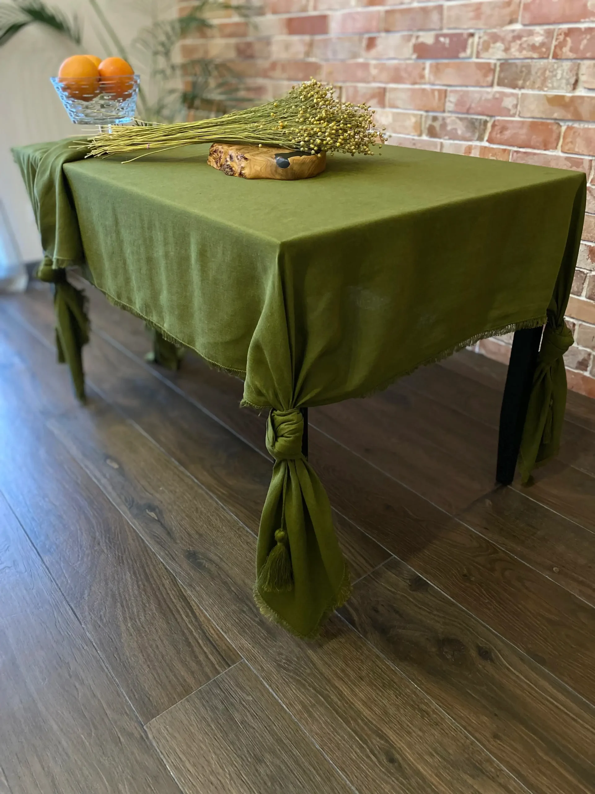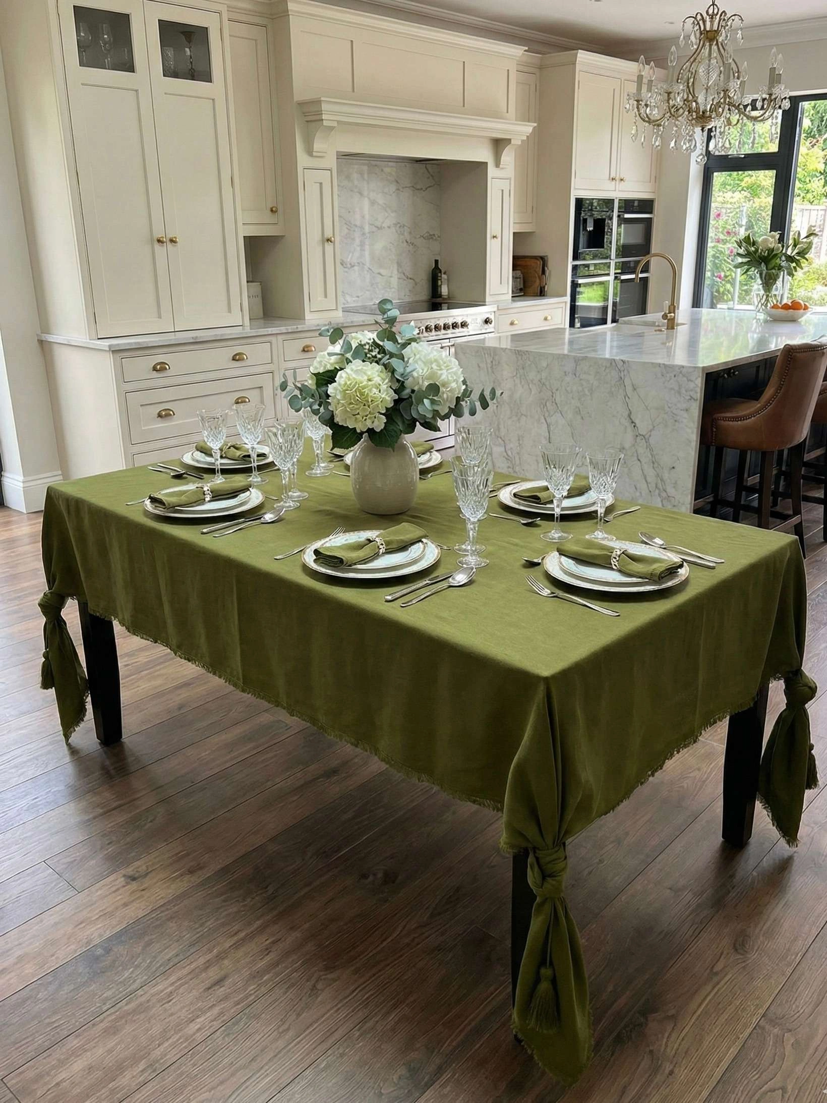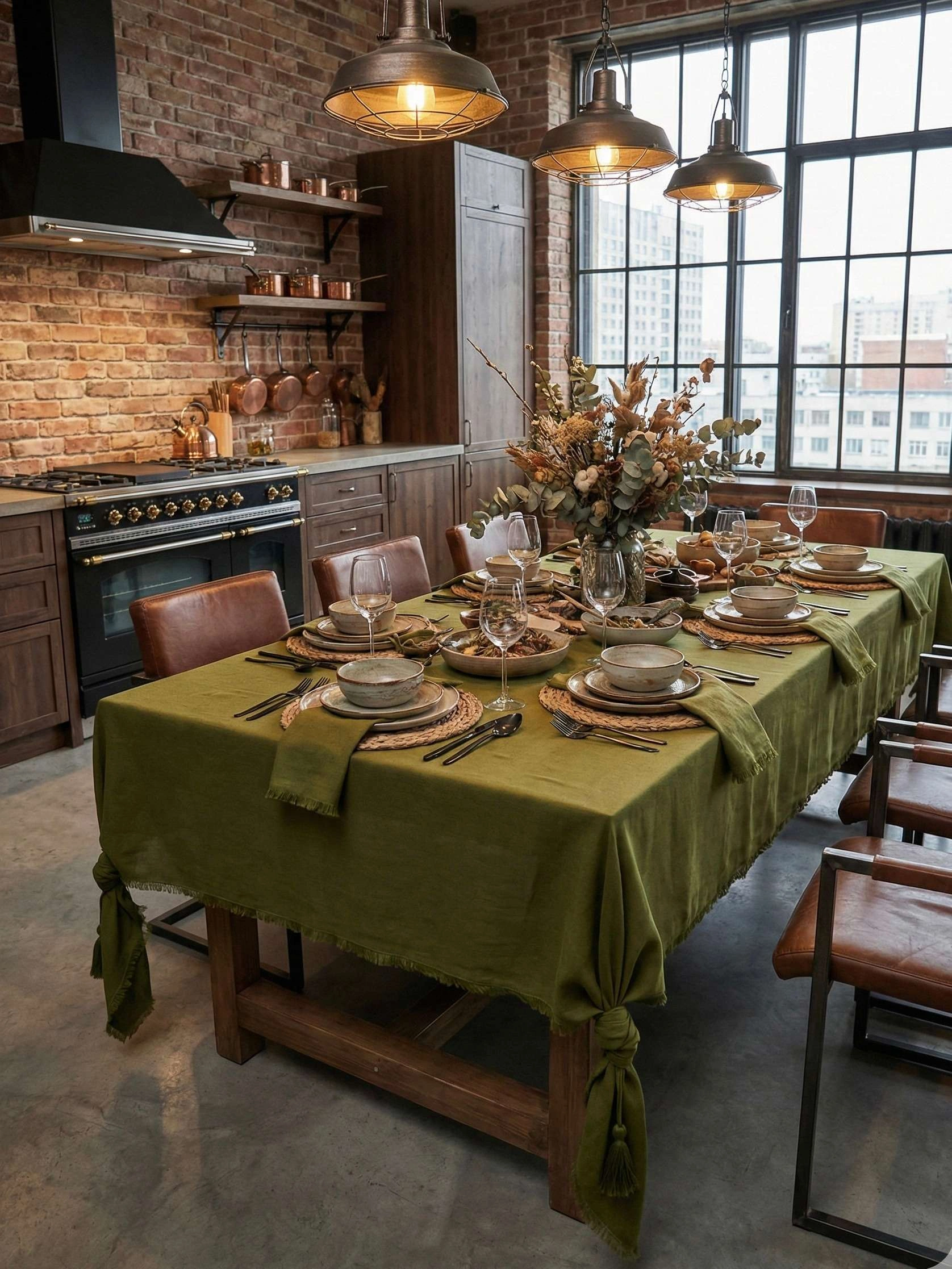 | Насыщенный Цвет | Глубокий оливковый цвет (хаки) придает скатерти благородный и современный вид. |
