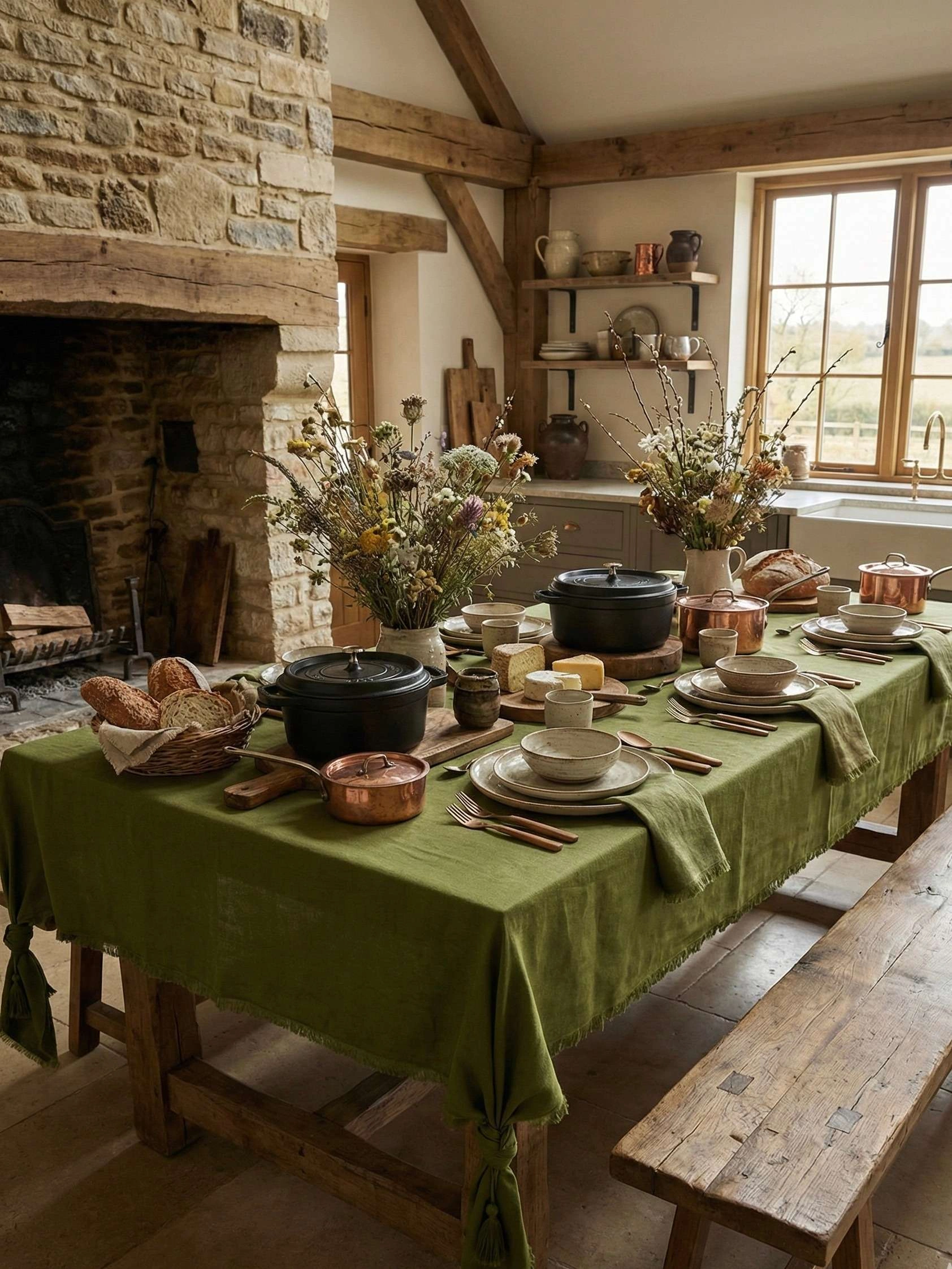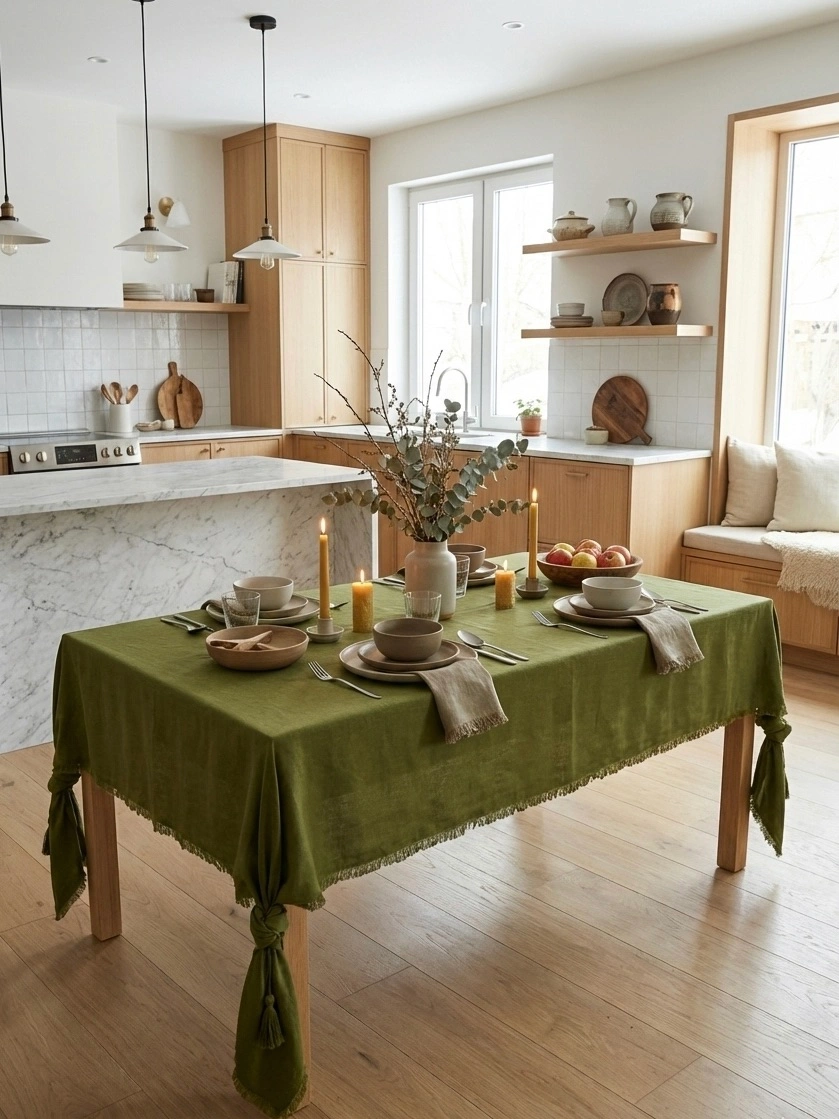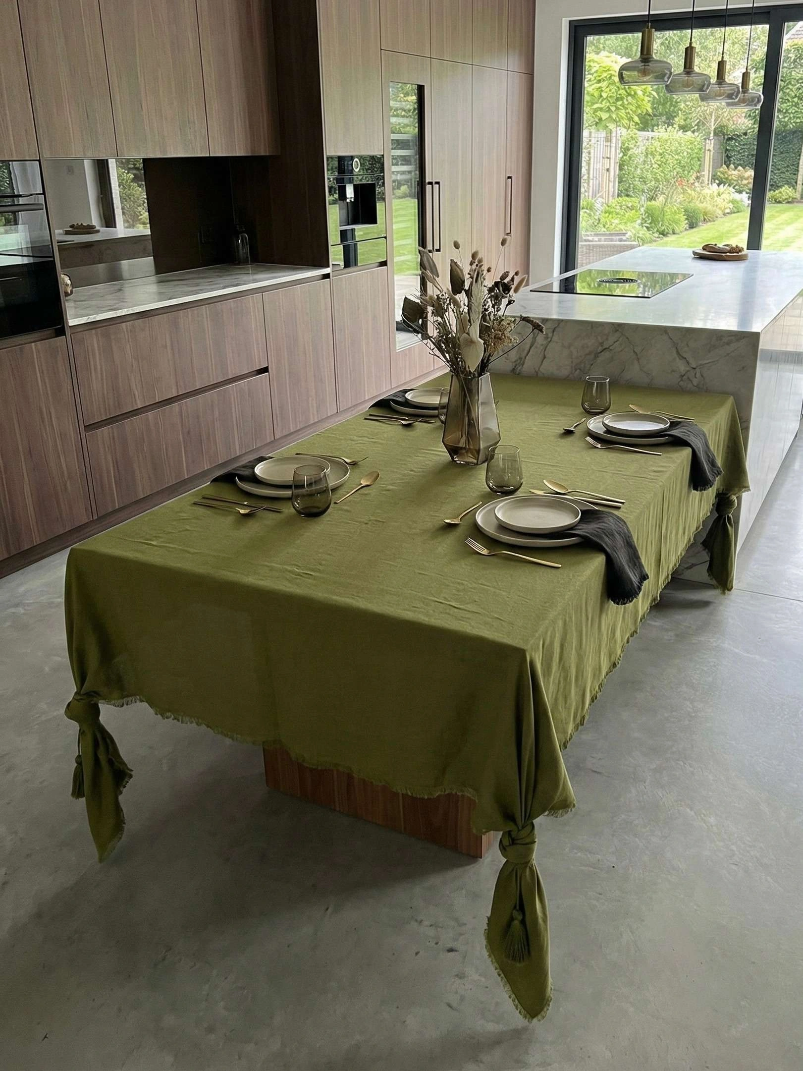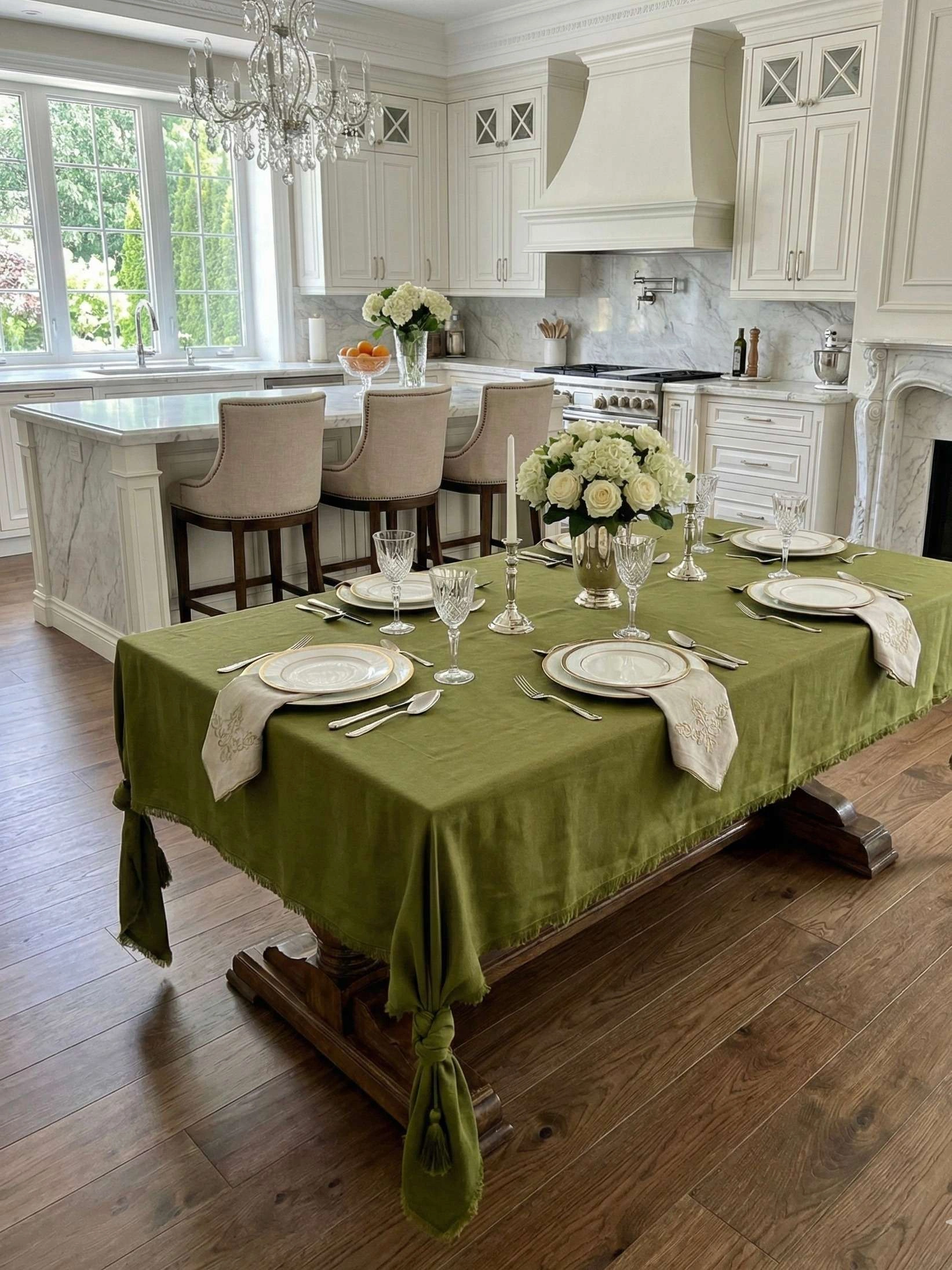 | Насыщенный Цвет | Глубокий оливковый цвет (хаки) придает скатерти благородный и современный вид. |