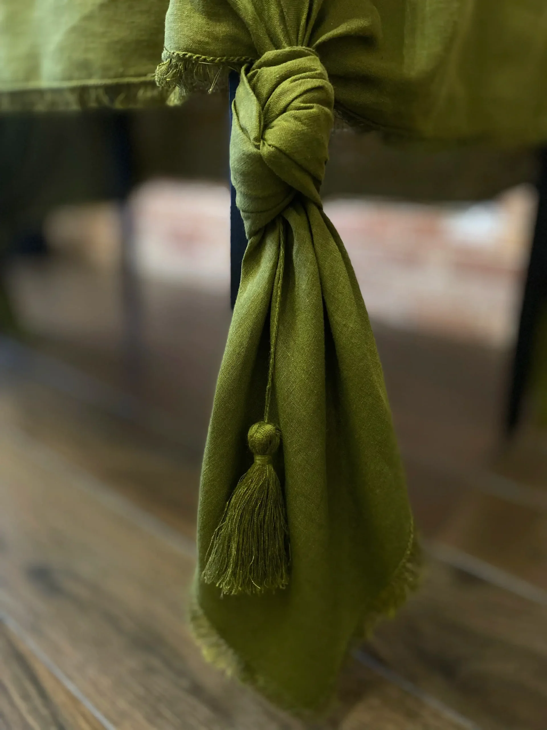 | Бахрома | Края полотна обработаны нежной, распущенной бахромой (fringe), что усиливает фактуру натурального материала. |