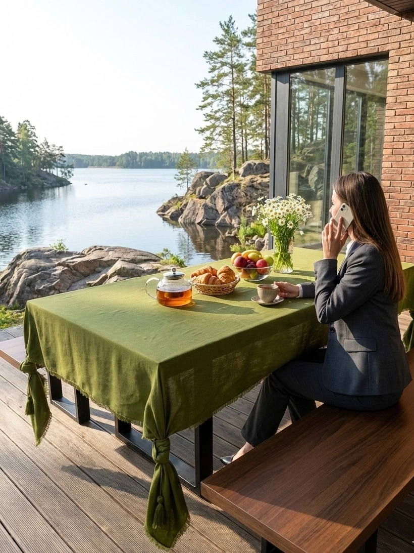 🎁 Идеальный Подарок: Эта дизайнерская льняная скатерть — роскошный и запоминающийся премиальный подарок для ценителей качества и природных оттенков.