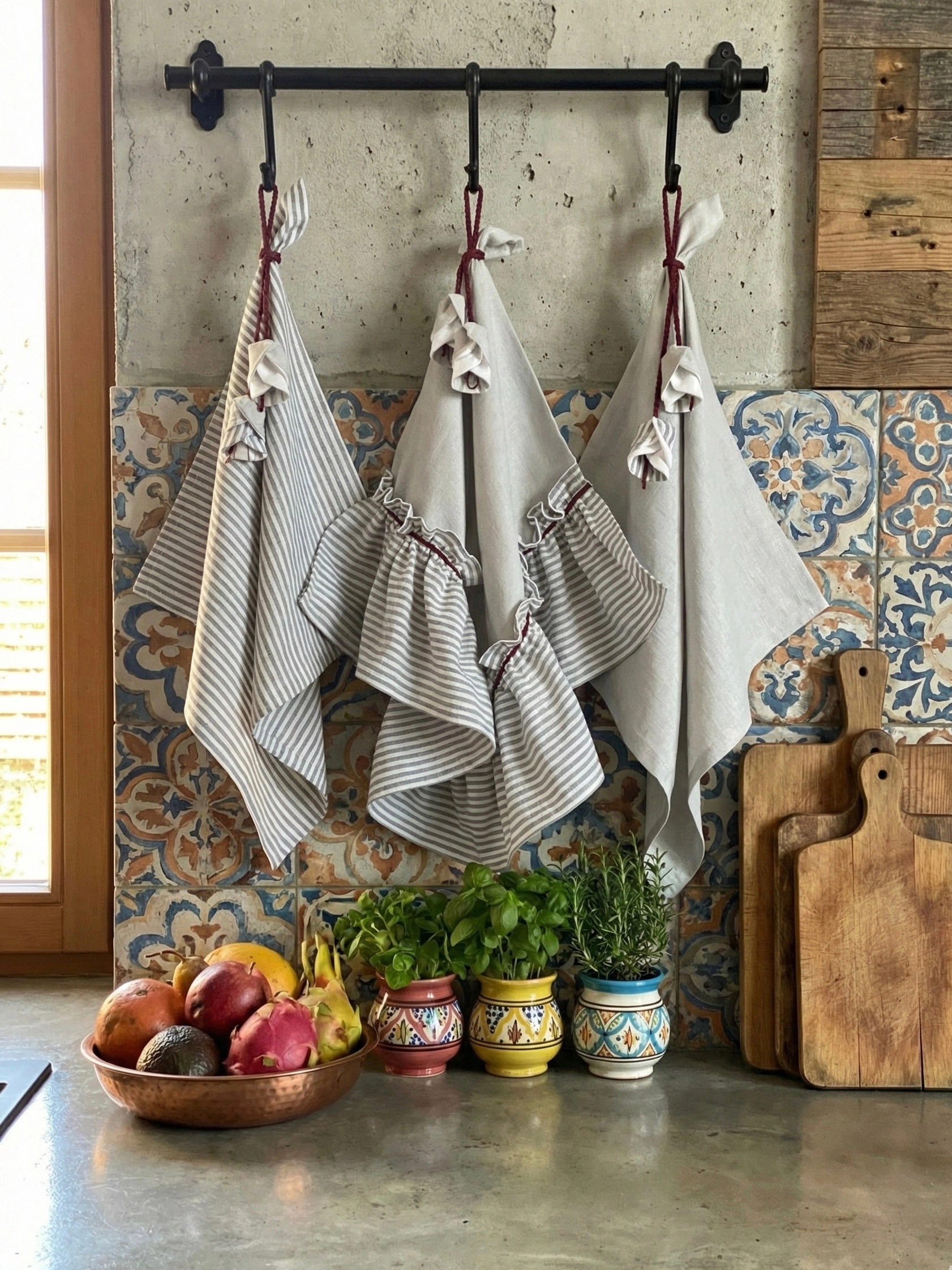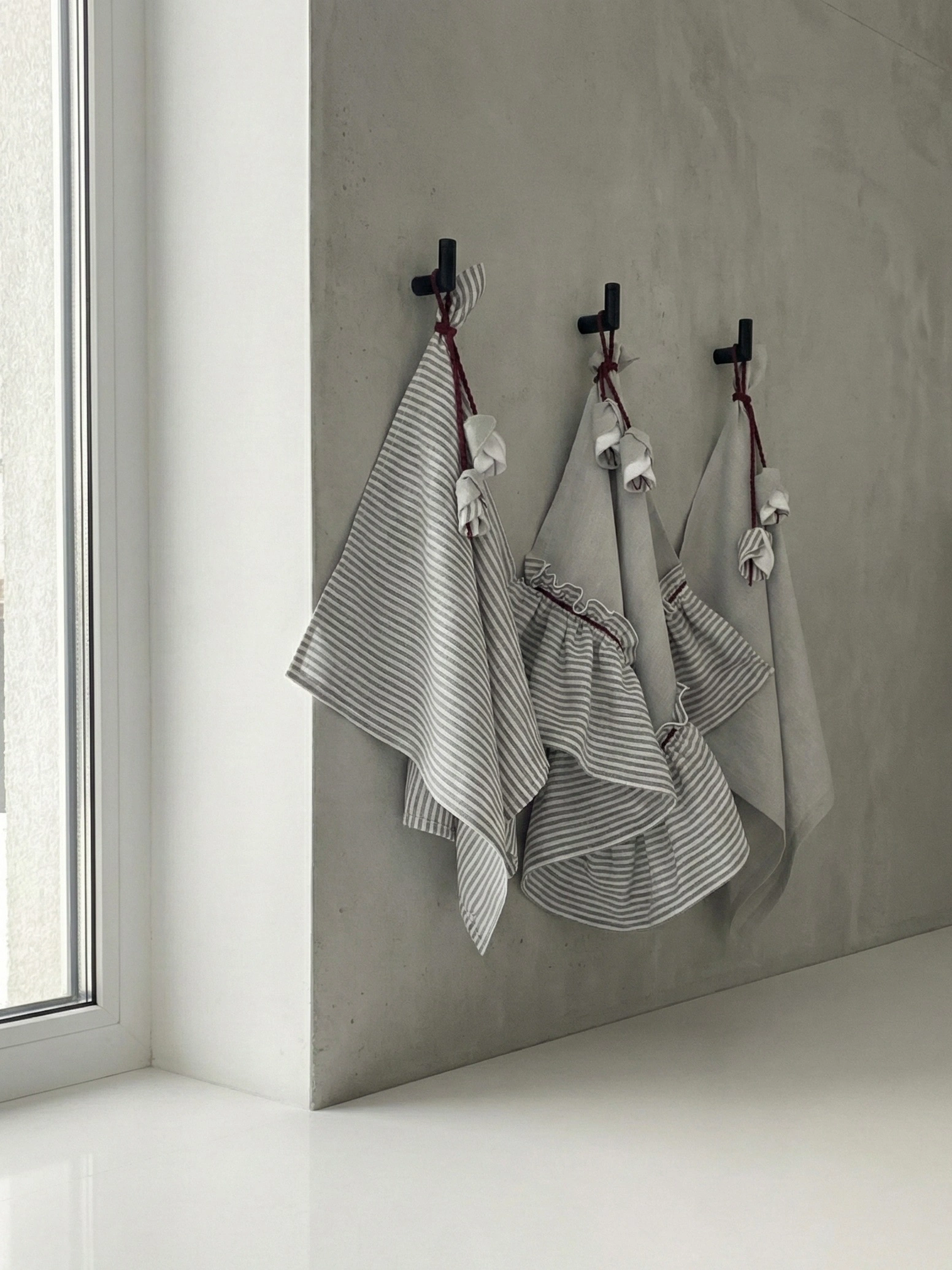 ✨ Идеальный Комплект: Трио Льняного Текстиля с Контрастными Акцентами Ручной Работы